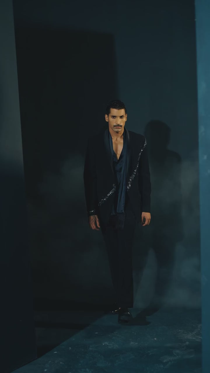 Hand Embroidered Black Glitzy Tuxedo